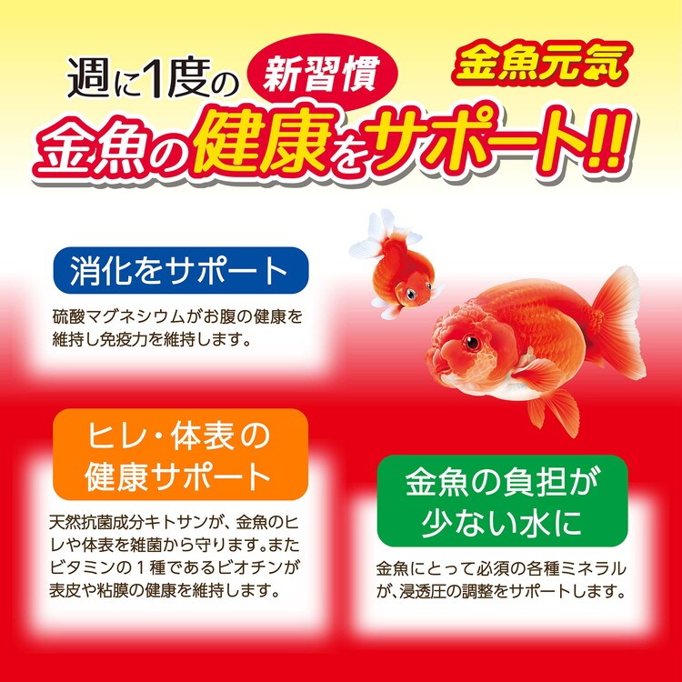 ・天然好酸性分キトサン、ビオチン配合で、金魚のヒレや体表を雑菌から守ります。