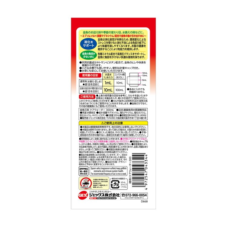 ・カルキ抜きには別売のGEX「金魚元気うるおう水づくり」をご使用することをおすすめします。