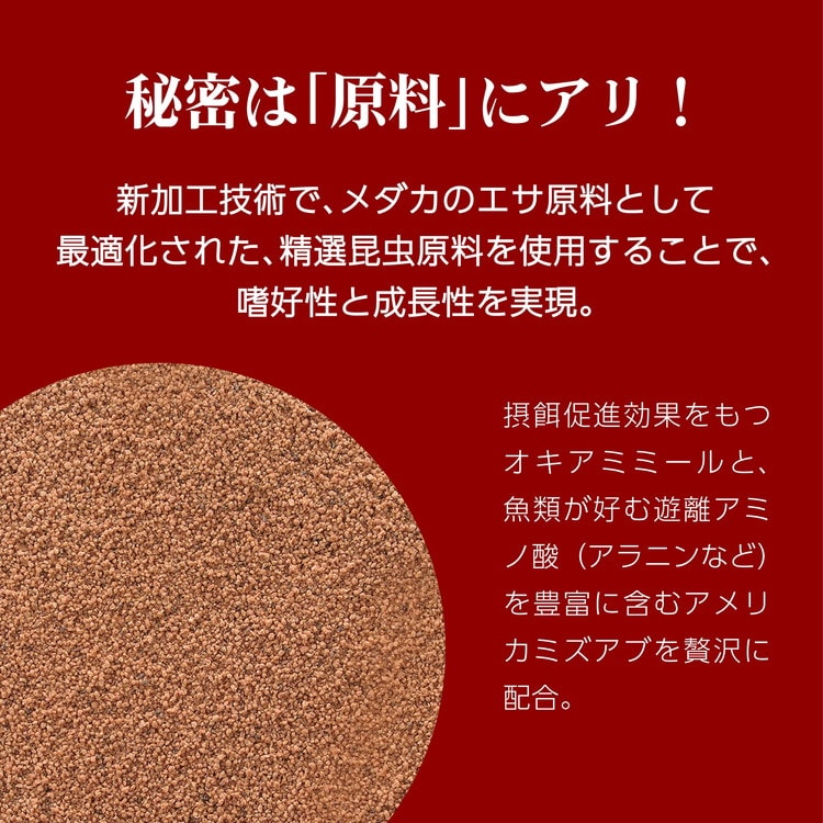 ・国内大手海洋養殖飼料メーカーの原料に加え、ジェックス独自の精選された昆虫原料を贅沢に配合した高栄養ハイブリッド型プレミアムフードです。
