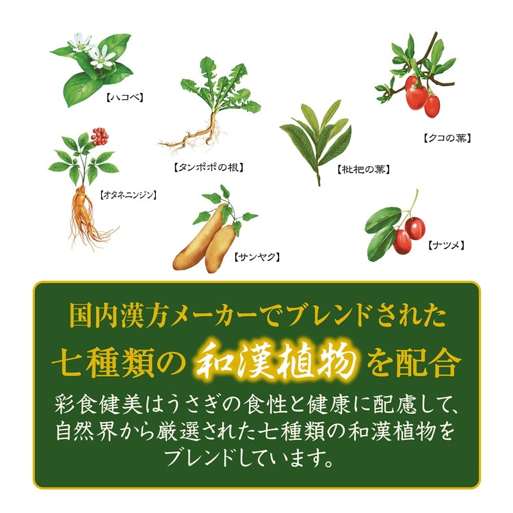・彩食健美はうさぎの食性と健康に配慮して、自然界から厳選された七種類の和漢植物をブレンドしています。