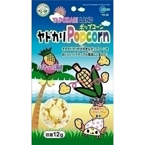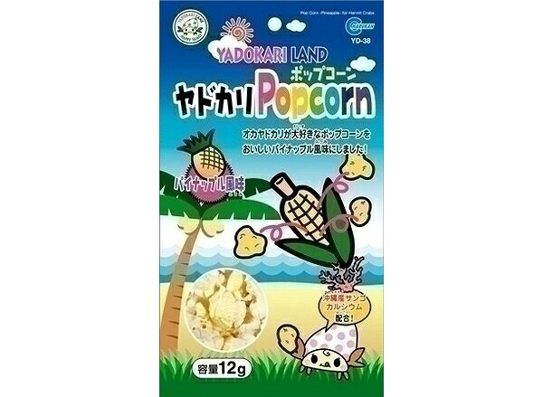 オカヤドカリが大好きなポップコーンをおいしいパイナップル風味にし、沖縄産の珊瑚カルシウムを配合しました。