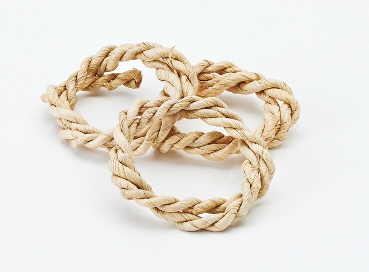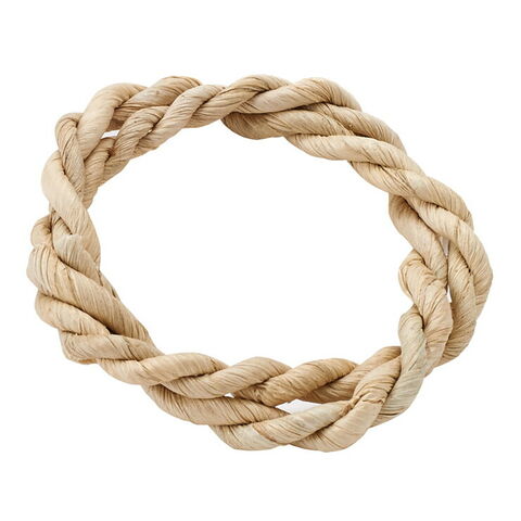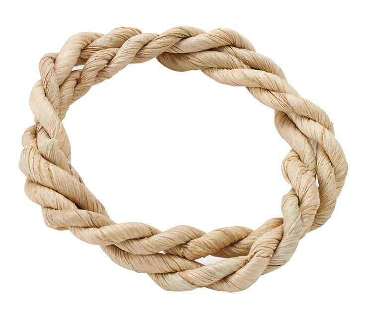 トウモロコシの葉で編んだロープをリングにしました。かじりながらほぐして遊べます。