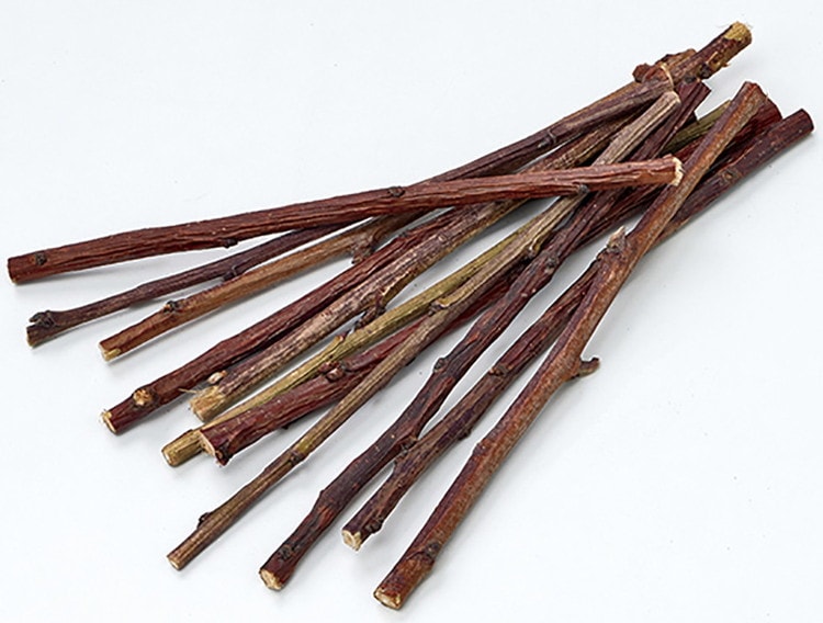 野生下では、木の皮をはがしたりすることが大好きな小動物や小鳥に、飼い主が手から与えることもできる小枝です。りんごの木の枝の部分を、ペットがかじりやすい長さでカットしました。折っても与えやすいスリムタイプ。愛するペットのデンタルケアに。