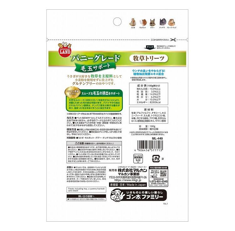 マルカン バニーグレード 牧草トリーツ 毛玉サポート 180g【ポイント10倍】
