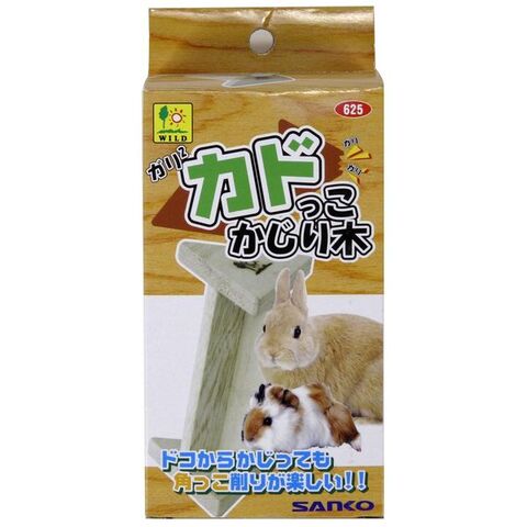 ドコからかじっても角がかじれる!!カドっこかじり木は、かじりたくなる角面が転がっても、かじりやすい角度で現れます