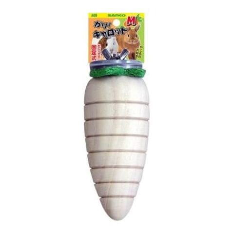 にんじんモチーフが可愛い固定式かじり木。横に入った切り込みが齧りやすくとっても楽しい!