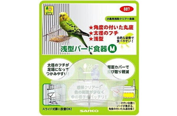 本品は小型インコ、中型インコやフィンチ等の小鳥用の飼育ケージ内取り付け用食器です。他の目的及び他の生体には使用しないで下さい。本品を洗う時は、柔らかい布かスポンジを使い、水またはぬるま湯で洗って下さい。 金属製のたわしや薬品、60度以上のお湯等の高温になるものを使用しないで下さい。 キズが付いたり、樹脂の変質、変形の恐れがあります。使用時における事故等に関しましては、責任を負いかねますので予めご了承下さい。幼児が本品で遊んだりしないよう、注意して下さい。小鳥飼育ケージの内側ワイヤーの間から、食器背面のワイヤーフックを、外側に出し、ヨコ線ワイヤーに引っ掛けて、固定して下さい。※生き物は、種類や性格、体格(体重やサイズ、成長など)により、個体差があります。飼育者の方は生き物の行動や習性をよく理解・観察して本品の使用範囲を超える場合や、異常や危険を感じた場合は、直ちに使用を中止して下さい。