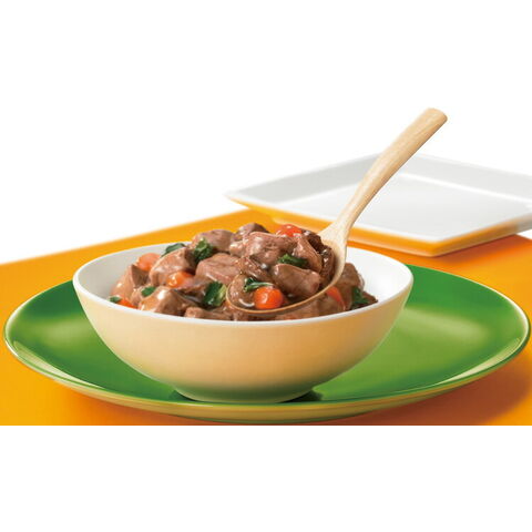 愛犬に必要な栄養がきちんとつまったバランスの取れた総合栄養食です。食べ応えのある角切り肉をたっぷり使い、ビタミン豊富な緑黄色野菜を加えました。
