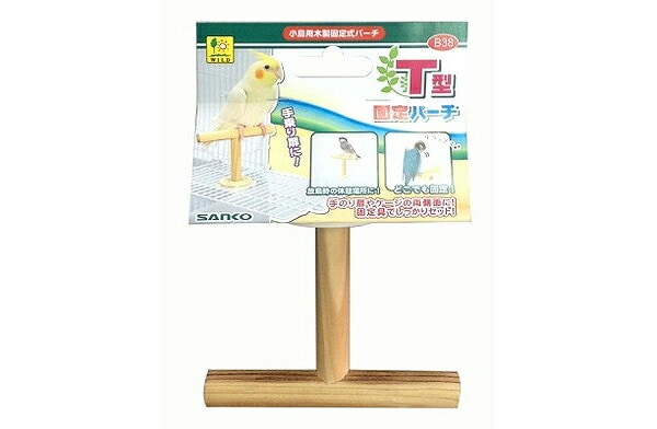 小鳥用木製固定式パーチ ケージのどこでも固定!放鳥時の休憩場所に!