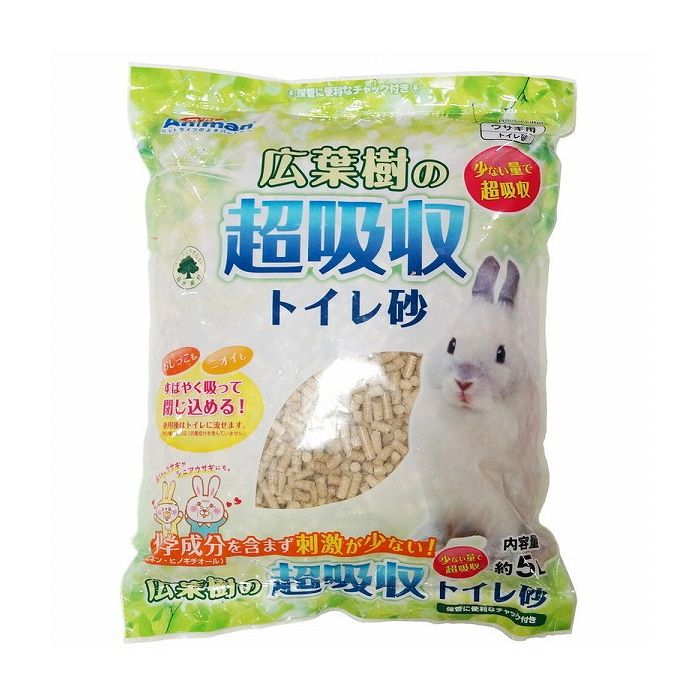 おしっこも、ニオイもすばやく吸って閉じ込める広葉樹のトイレ砂、吸水量(ヒノキ)針葉樹の約2倍。※当社調べ(一般的なヒノキのトイレ砂との同容積比較)化学成分(ピネン、ヒノキチオール)を含まず刺激が少ない!赤ちゃんウサギやシニアウサギにも。