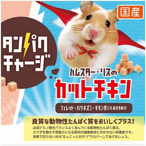 ・ハムスターやリス用おやつには穀物類の主食が多い中、日常の活動源にもなる動物性たんぱくを手軽に取り入れる事が出来るおやつです。