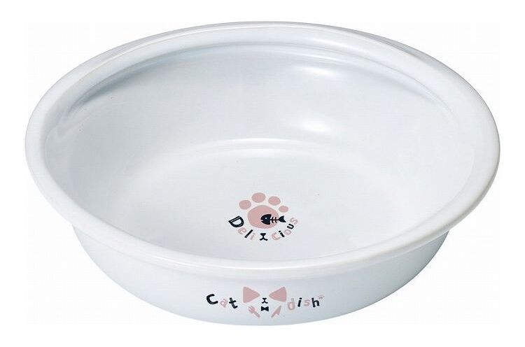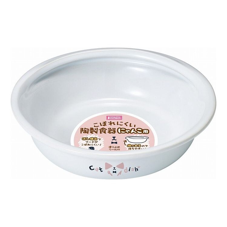 食べる時にこぼれにくい形状の猫用陶製食器です。滑り止めシール付き!