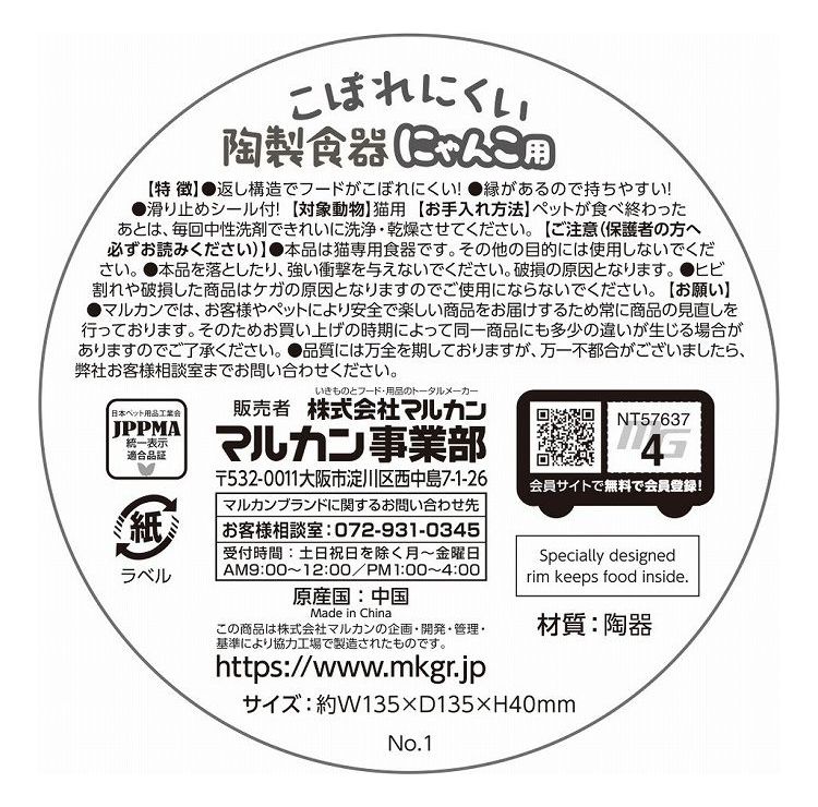マルカン こぼれにくい陶製食器 にゃんこ用【ポイント10倍】