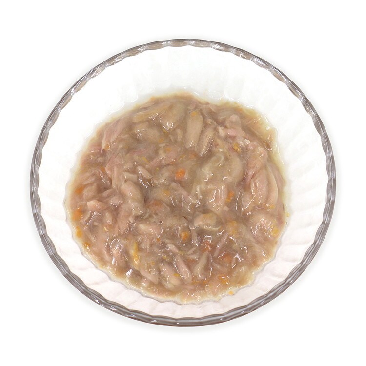 水、まぐろ、増粘安定剤(タピオカ澱粉、グァーガム)、にんじん、大豆油、香料、ミネラル類(Ca、P、K、クロライド、Fe、Zn、Mn、Cu、Se、I)、タウリン、ビタミン類(コリン、E、B1、A、ナイアシン、パントテン酸Ca、D3、B2、B6、ビオチン、B12、葉酸、K3)