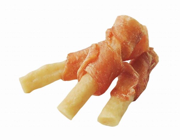 鶏と白身魚の軟骨を使ったガリガリ噛める芯棒に国産むね肉を手巻きしました。グルコサミン・コンドロイチン・抗酸化成分が摂れて、噛みごたえが楽しめるおやつです。