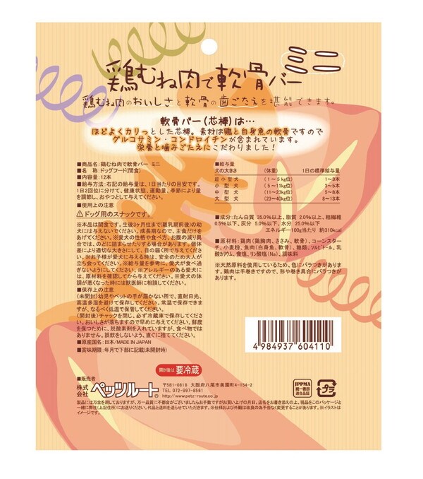 【6個セット】 ペッツルート 鶏むね肉で軟骨バー ミニ 12本 x6【送料無料】