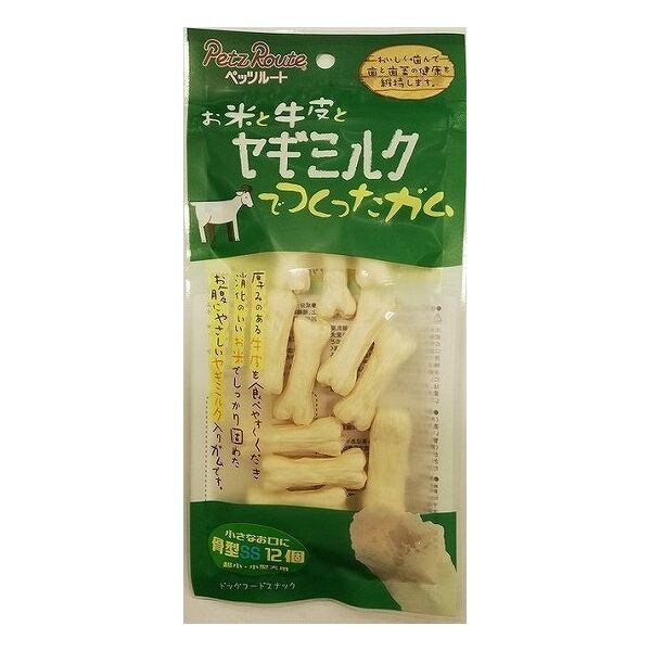 【6個セット】 ペッツルート お米と牛皮とヤギミルクでつくったガム 骨型 SS 12個 x6【送料無料】