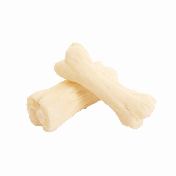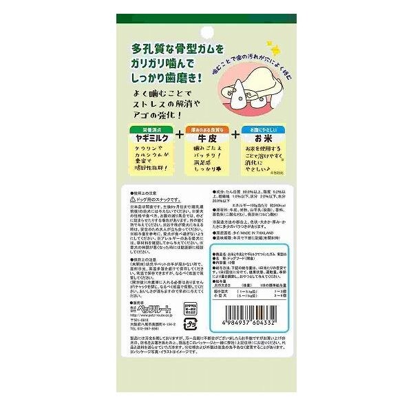 多孔質な骨型ガムをガリガリ噛んでしっかり歯みがき!栄養満点なヤギミルクと厚みのある良質な牛皮をお腹にやさしいお米でしっかり固めました。