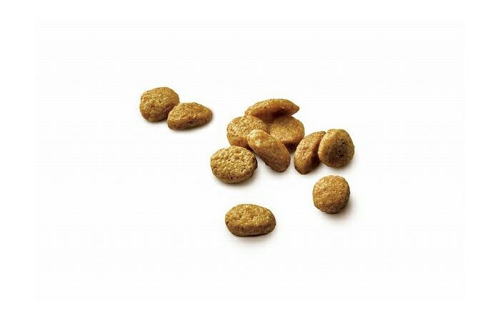 チキン、コーングルテン、チキンミール、米、脱脂大豆、牛脂、とうもろこし、小麦、サーモン、たんぱく加水分解物、モルトエキス、ほうれん草、ミネラル類(カルシウム、リン、カリウム、ナトリウム、クロライド、鉄、銅、マンガン、亜鉛、ヨウ素、セレン)、ビタミン類(A、D、E、K、B1、B2、パントテン酸、ナイアシン、B6、葉酸、ビオチン、B12、コリン)、アミノ酸類(タウリン)