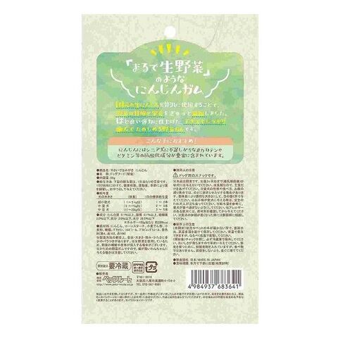 にんじん、コーンスターチ、小麦でん粉、小麦粉、糖類、グリセリン、ソルビトール、プロピレングリコール、着色料(黄4、赤102、赤106)