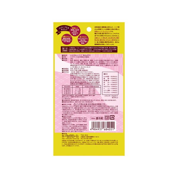 噛む力の弱い超小型犬やハイシニアの子でも食べやすい形状とやわらかさにこだわりました。良質なたんぱく質を含む馬生肉と嗜好性の高い鶏生肉を55%以上使用することで、高い栄養価と嗜好性を両立し、愛犬の健康維持を美味しくサポートします。