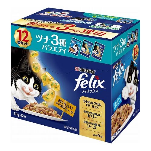 ネスレ日本 ネスレピュリナペットケア フィリックスパウチ 成猫 ツナ3種バラエティ 50g×12袋【ポイント10倍】
