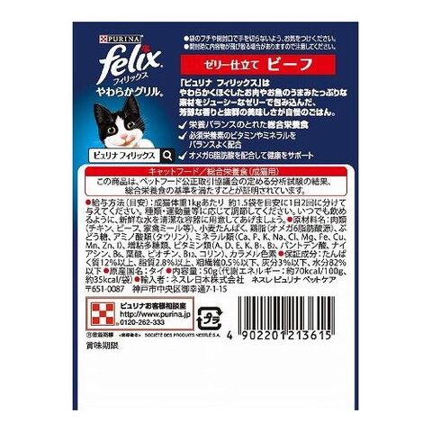 ネスレ日本 ネスレピュリナペットケア フィリックスパウチ やわらかグリル 成猫 ゼリー仕立て ビーフ 50g