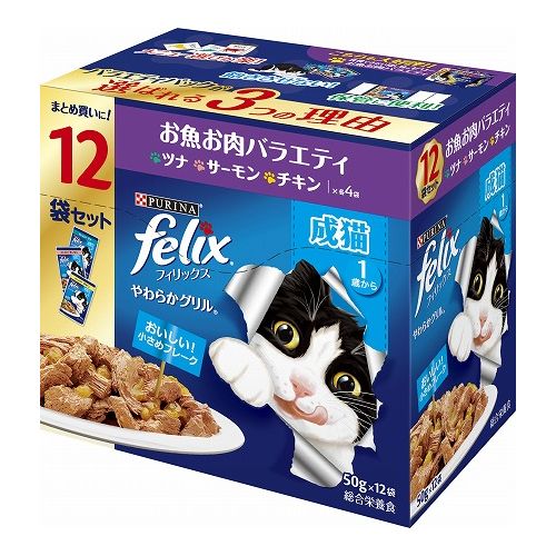 ネスレ日本 ネスレピュリナペットケア フィリックスパウチ やわらかグリル 成猫 お魚お肉バラエティ 50g×12袋【ポイント10倍】