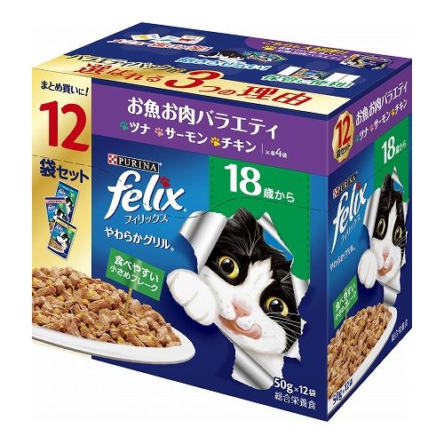 ネスレ日本 ネスレピュリナペットケア フィリックスパウチ やわらかグリル 18歳から お魚お肉バラエティ 50g×12袋【ポイント10倍】