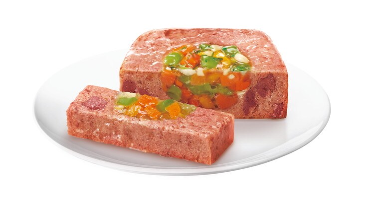 肉類(チキン、ビーフ等)、野菜類(にんじん、パプリカ、いんげん等)、穀類、チーズ、ブドウ糖、ディル、ビタミン類、ミネラル類、増粘多糖類、リン酸塩(Na)、EDTA-Ca・Na、発色剤(亜硝酸Na)