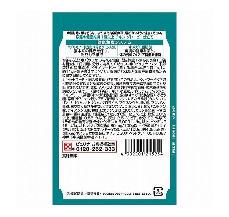 ネスレ ピュリナワンキャット パウチ 尿路の健康維持 1歳以上 チキングレービー仕立て 50g【ポイント10倍】