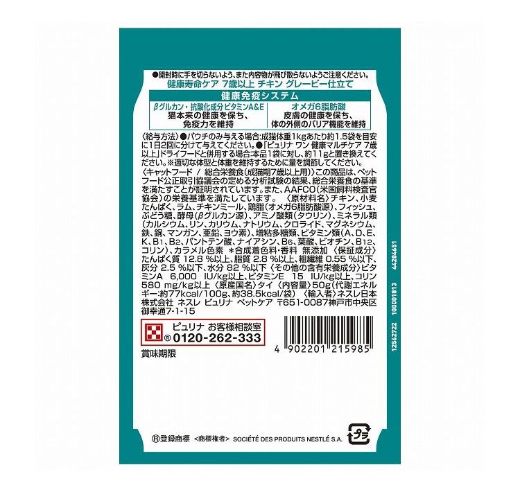 ネスレ ピュリナワンキャット パウチ 健康寿命ケア 7歳以上 チキングレービー仕立て 50g【ポイント10倍】