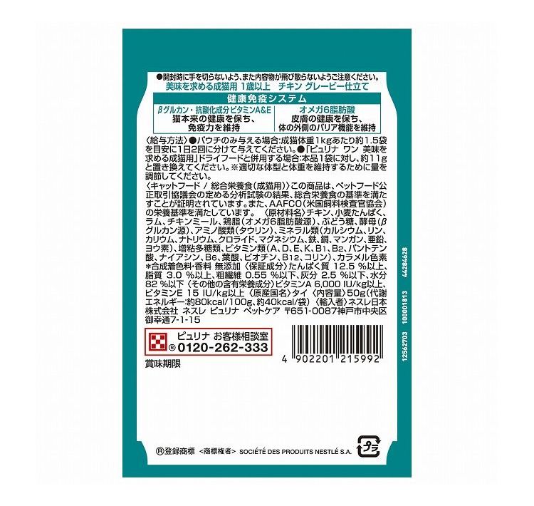 ネスレ ピュリナワンキャット パウチ 美味を求める成猫用 1歳以上 チキングレービー仕立て 50g【ポイント10倍】