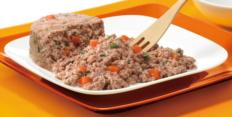 肉類(チキン、ビーフ、ラム、ポーク、家禽等)、野菜類(にんじん、ほうれんそう)、食物繊維、マリーゴールドミール、トマトパウダー、ビタミン類(B1、B6、B12、C、D3、E、コリン、パントテン酸、葉酸)、ミネラル類(Ca、Cl、I、K、Mg、Mn、P、Se、Zn)、増粘多糖類、pH調整剤、EDTA-Ca・Na、発色剤(亜硝酸Na)