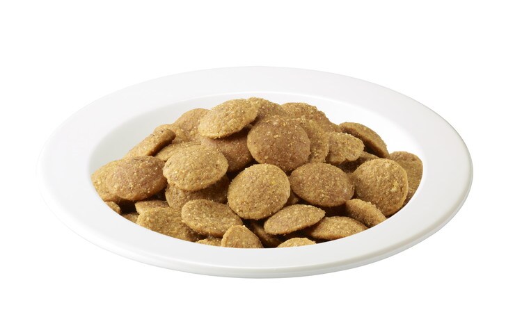 小麦、肉類(チキンミール、チキンエキス、家禽ミール等)、植物性タンパク、油脂類(鶏脂(オメガ6脂肪酸源))、とうもろこし、家禽類、ビートパルプ(食物繊維源)、イヌリン、ユッカ抽出物、トリポリリン酸ナトリウム、ビタミン類(A、B1、B2、B6、B12、C、D3、E、コリン、ナイアシン、パントテン酸、葉酸)、ミネラル類(亜鉛、カリウム、クロライド、セレン、鉄、銅、ナトリウム、ヨウ素)、アミノ酸類(タウリン、メチオニン)、酸化防止剤(BHA、BHT、ミックストコフェロール、ローズマリー抽出物、クエン酸)