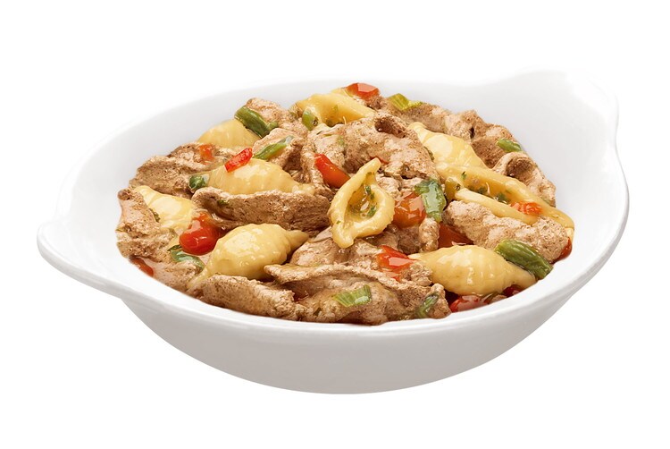 厳選された鶏レバーに、緑黄色野菜とパスタを合わせておいしく丁寧に調理いたしました。