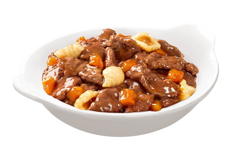 じっくり煮込んだビーフに、緑黄色野菜とパスタを合わせておいしく丁寧に調理いたしました。