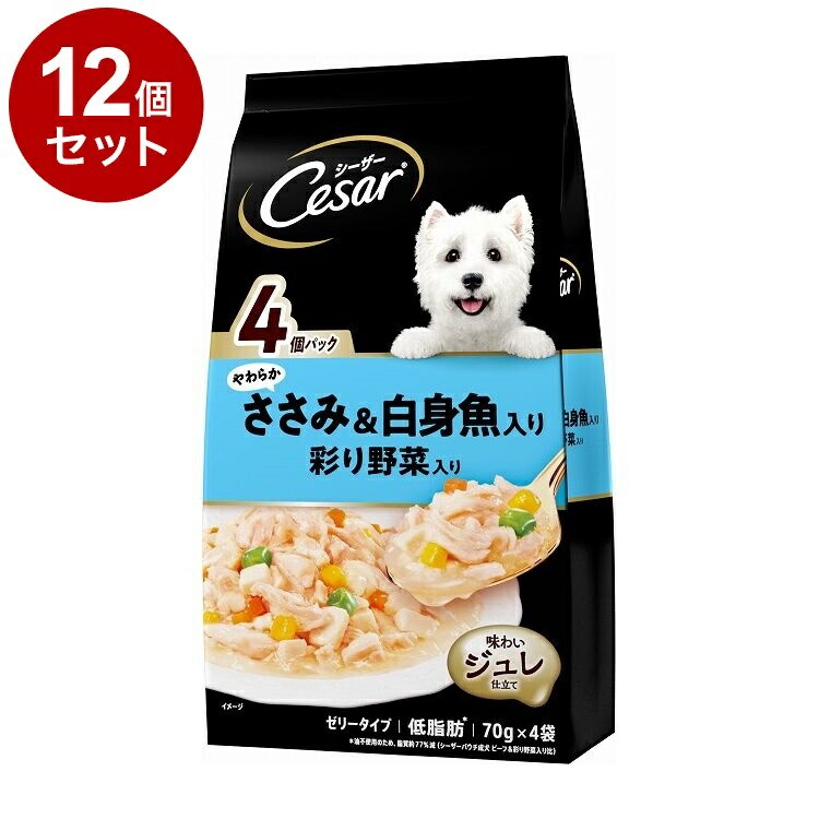 【12個セット】 シーザー やわらかささみ&白身魚入り 彩り野菜入り 70g×4袋【ポイント10倍】 【送料無料】
