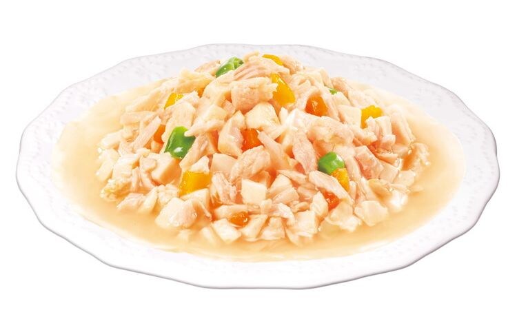 14歳からの愛犬のために。低脂肪なささみをふっくら蒸して、低カロリー※に仕上げました。厳選されたささみに彩り野菜を加えて、丁寧に調理し、素材のおいしさをそのまま閉じ込めました。高齢犬にも食べやすく、ささみを細かくほぐしています。グルコサミン配合で、足腰の健康維持をサポート。