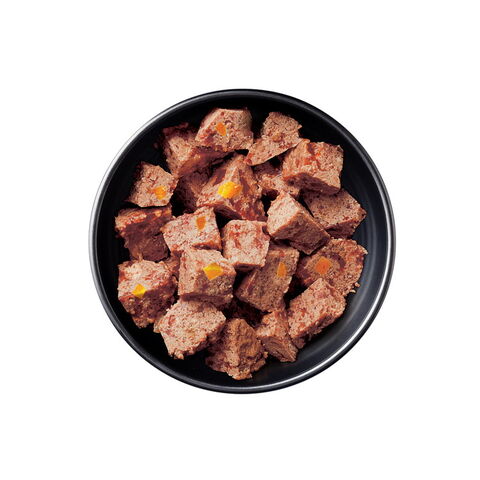 厳選のビーフに、さつまいもとにんじんを加え、着色料・香料不使用で愛情込めて調理しました。おいしく身体の健康にも優しい、安心の愛情ごはんです。
