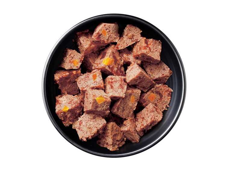 肉類(チキン、ビーフ等)、野菜類(にんじん等)、さつまいも、チコリー繊維、ビートパルプ、ローズマリー、ぶどう糖、ビタミン類、ミネラル類、増粘多糖類