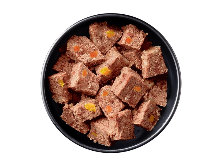 肉類(チキン、ラム等)、野菜類(にんじん等)、さつまいも、チコリー繊維、ビートパルプ、ローズマリー、ぶどう糖、ビタミン類、ミネラル類、増粘多糖類