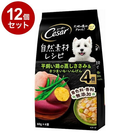 【12個セット】 シーザー 自然素材レシピ 平飼い鶏の蒸しささみ&さつまいも・いんげん 60g×4袋【ポイント10倍】 【送料無料】