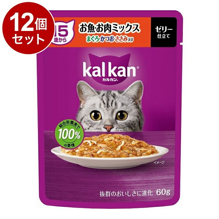【12個セット】 マース カルカン パウチ 15歳から お魚・お肉ミックス まぐろ・かつお・ささみ入り 60g【ポイント10倍】