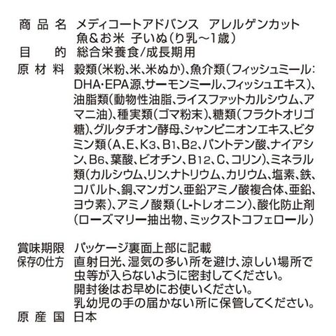 【2個セット】 ペットライン メディコートアドバンス アレルゲンカット 魚&お米 子いぬ (り乳~1歳) 2kg (500g×4)【ポイント10倍】 【送料無料】