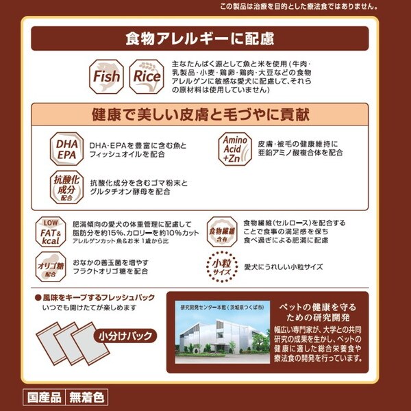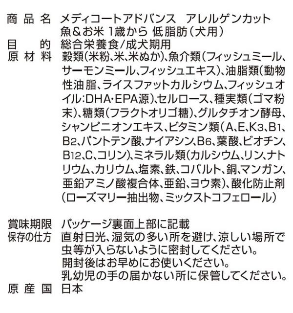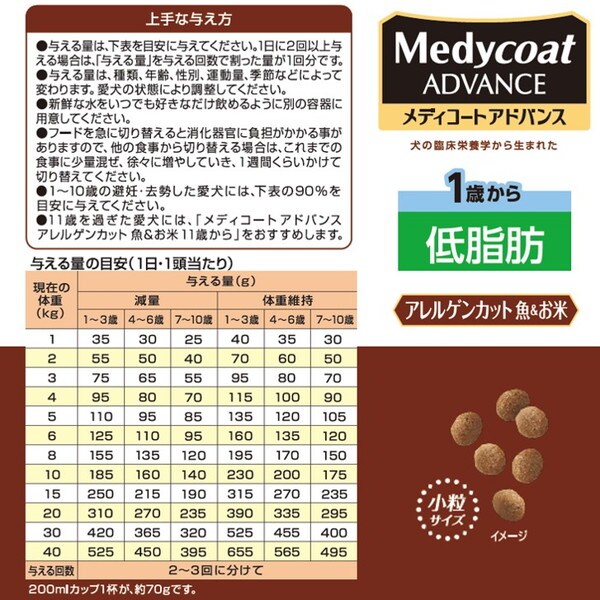 ・1歳からの肥満傾向の愛犬や避妊・去勢した愛犬の健康維持に配慮し、脂肪分とカロリーを調整。