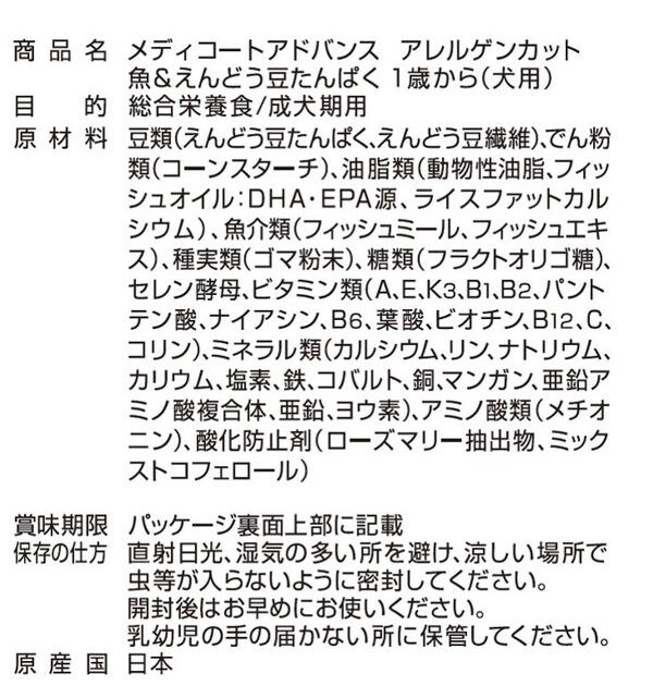 【4個セット】 ペットライン メディコートアドバンス アレルゲンカット 魚&えんどう豆たんぱく 1歳から 2kg (500g×4)【ポイント10倍】 【送料無料】