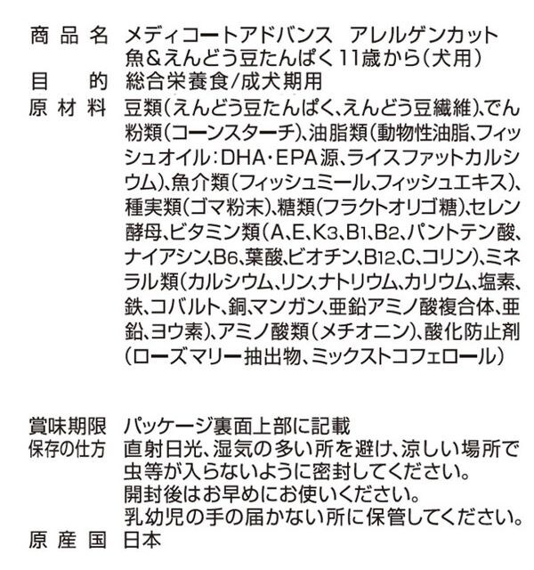 【2個セット】 ペットライン メディコートアドバンス アレルゲンカット 魚&えんどう豆たんぱく 11歳から 2kg (500g×4)【ポイント10倍】 【送料無料】