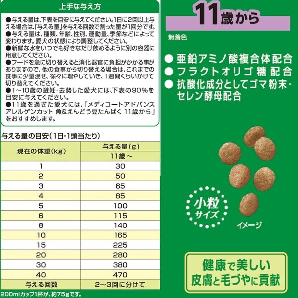 ・11歳からの老齢犬に。食事量が減ってくる老齢期の健康維持にカロリーを調整。