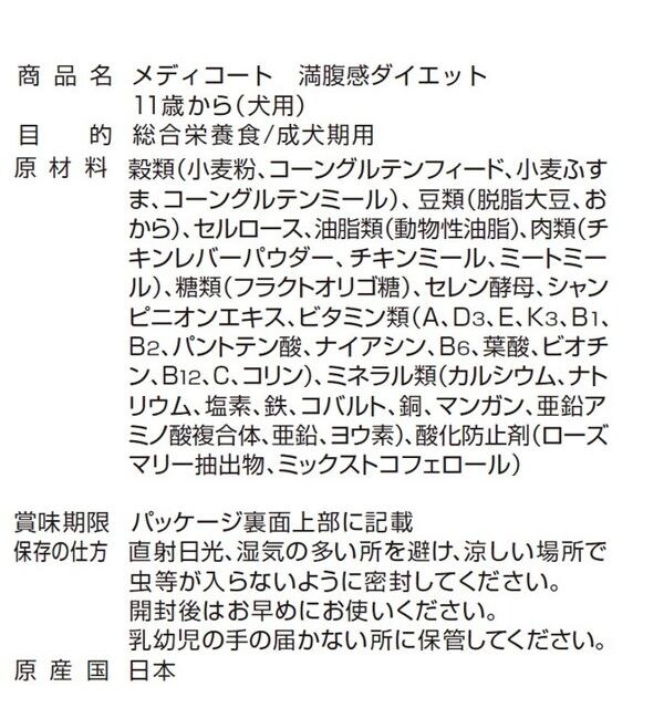 【4個セット】 ペットライン メディコート 満腹感ダイエット 11歳から 2.5kg (500g×5)【ポイント10倍】 【送料無料】
